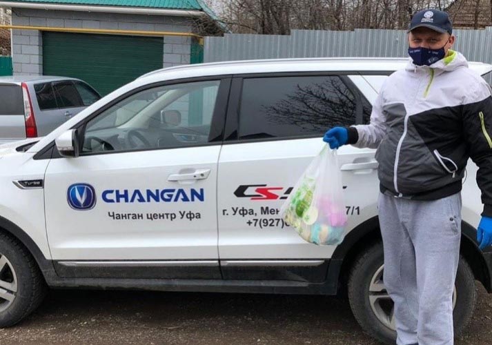 Многие дилеры Changan уже смогли помочь пожилым и людям из группы риска, не имеющим возможности выходить на улицу, с доставкой продуктов и лекарственных средств. Так, дилерский центр в Уфе «Алекс-Авто» в рамках акции на тестовых автомобилях Changan доставил продуктовые пакеты нуждающимся семьям в городе. Команда салона «Авто-Стандарт» в Вологде предоставила продуктовые наборы школьникам льготных категорий, многодетным семьям, а также детям с ограниченными возможностями. Представители дилерского центра «Аверс-авто» совместно с волонтерами и птицефабрикой в Челябинске и Копейске поддержали пожилых людей, находящихся на самоизоляции, и доставили им домой необходимые лекарства и продукты. «Чанган Центр ТСС авто» в Нижнем Новгороде в честь 75-й годовщины победы в Великой Отечественной войне поддержал ветеранов и также доставил им домой продуктовые наборы.